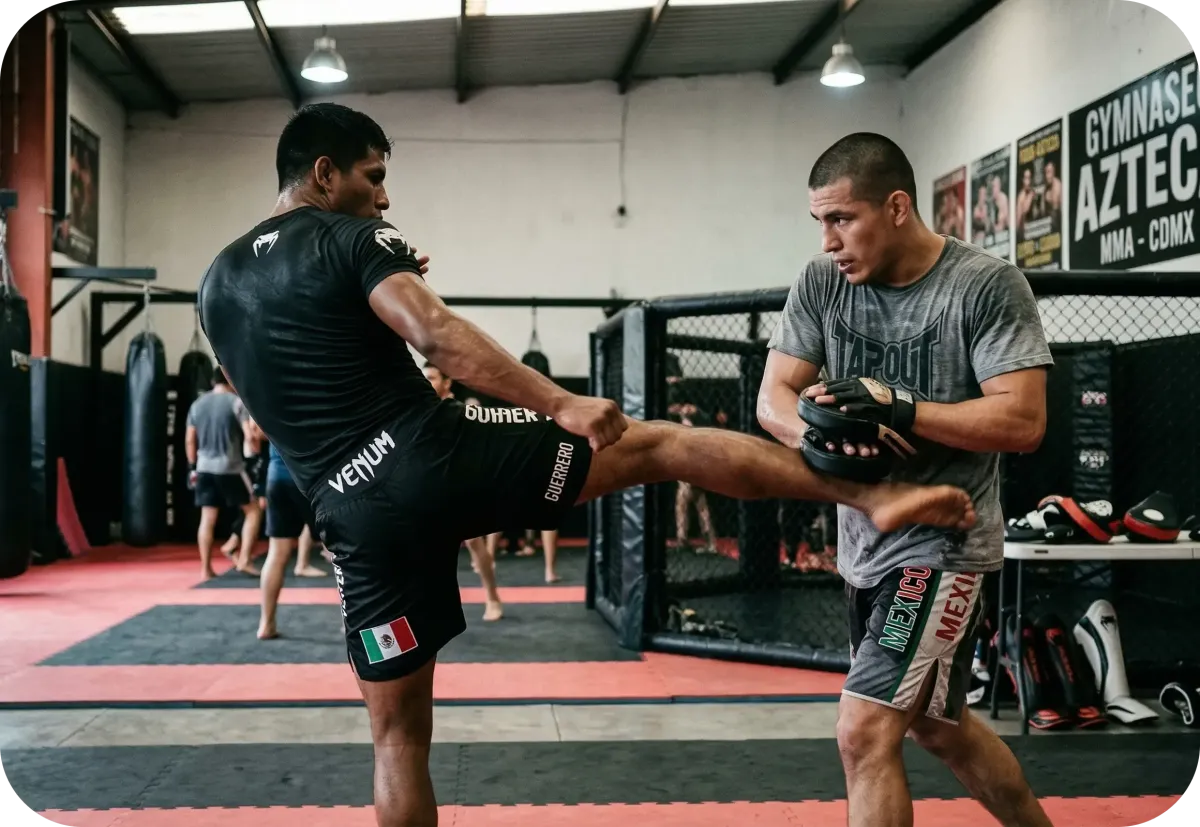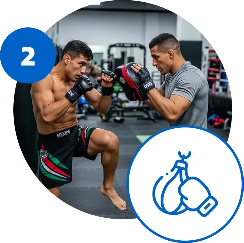 Entrenamiento privado 1 a 1 de MMA y alto rendimiento en Playa del Carmen para peleadores competitivos y líderes empresariales. Boxeo, kickboxing, wrestling, jiu-jitsu brasileño y acondicionamiento personalizado diseñados para desarrollar dominio competitivo, agilidad mental y resistencia física en sesiones de 60 minutos.
